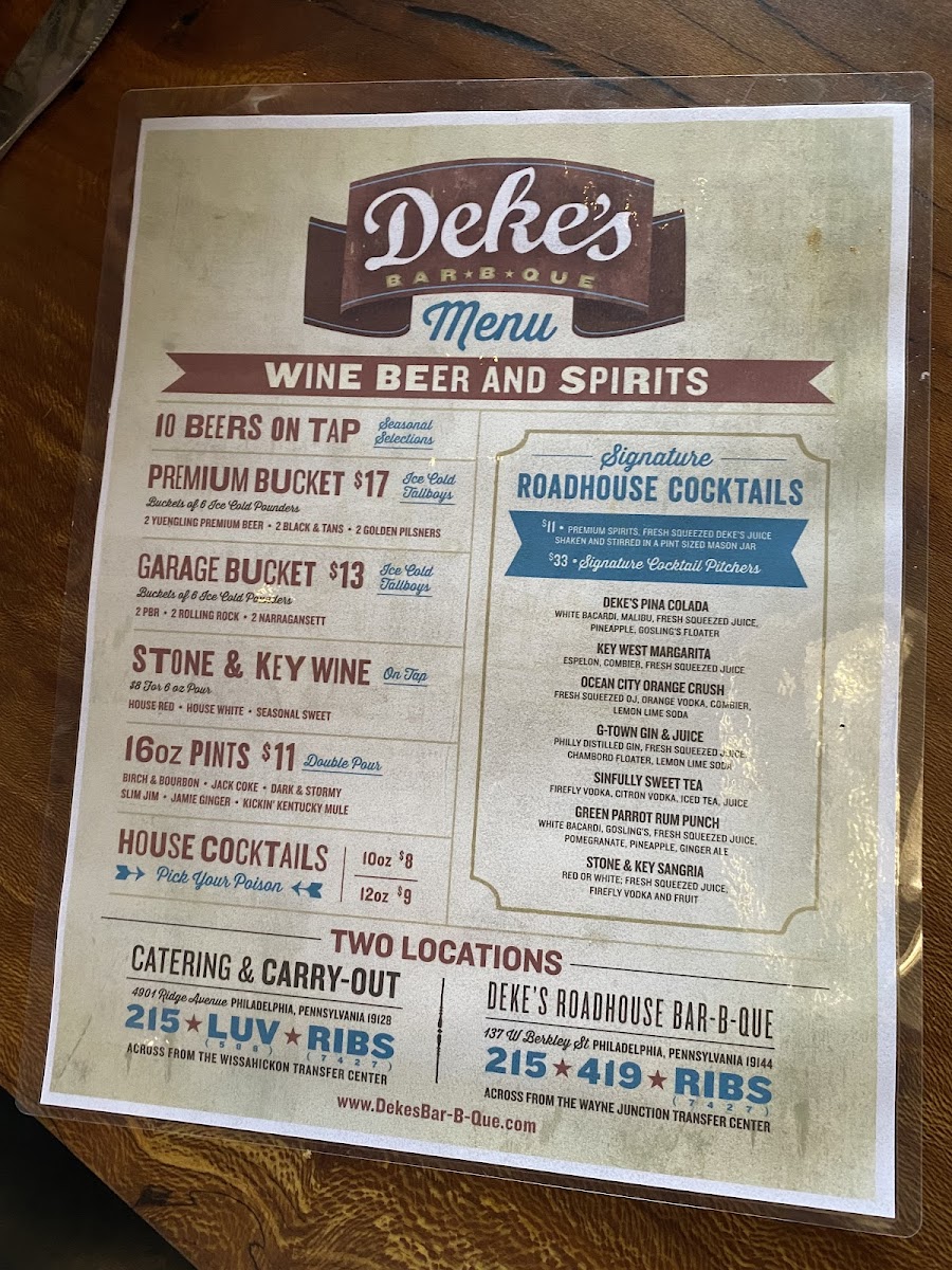 Deke's Bar-B-Que in Philadelphia serves mouthwatering, smoky barbecue in a cozy setting. Perfect for meat lovers craving authentic, flavorful ribs and fixings. A must-visit pit stop!